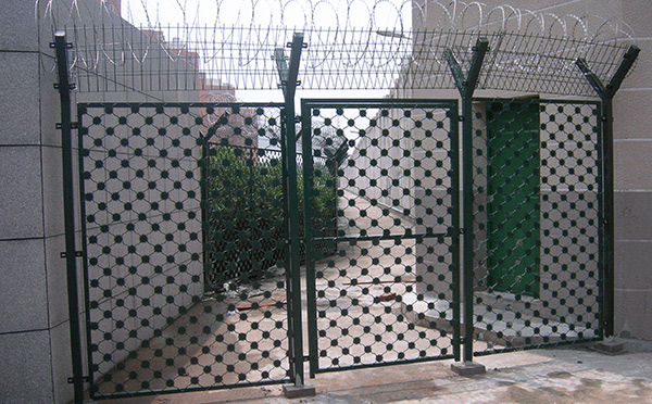 監獄護欄網又稱作“Y型安全防御護網”,是由V型支架立柱,加強型焊接片網,安全防盜連接件和熱鍍鋅刀片刺籠組成強度和安全防御性級別很高。近年來,被廣泛應用在機場監獄,軍事基地等高安全場所。(注:如果在監獄護欄網頂部加裝刀片刺絲、刀片刺繩后又很好的增強了安全防護性能)。